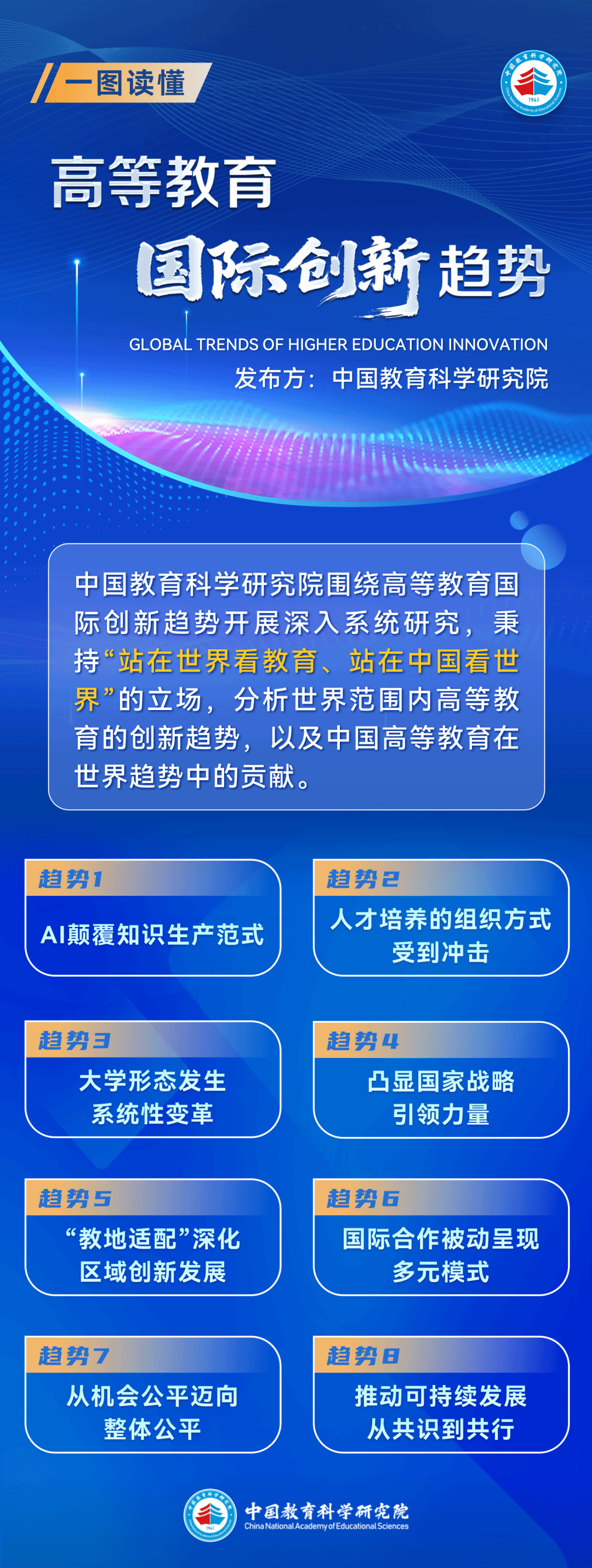 2026年1月22日,中国教育科学研究院召开年度国际教育创新趋势研讨会,会上发布《高等教育国际创新趋势报告》,提出高等教育创新发展八大趋势。