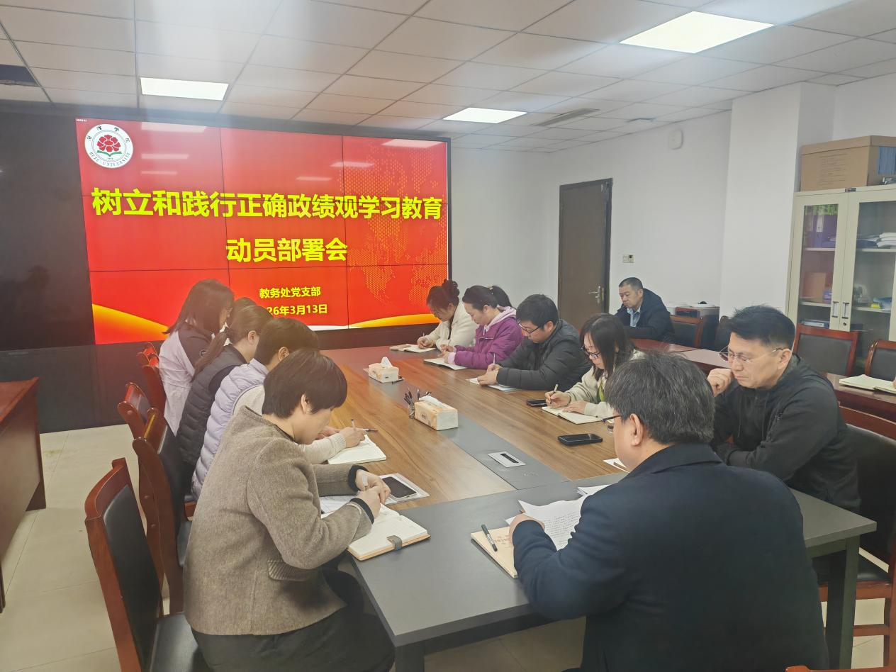 3月13日上午,教务处党支部在综合楼 406 会议室召开树立和践行正确政绩观学习教育动员部署会。支部书记孙洪波主持会议并作动员讲话,支部全体党员参加会议。